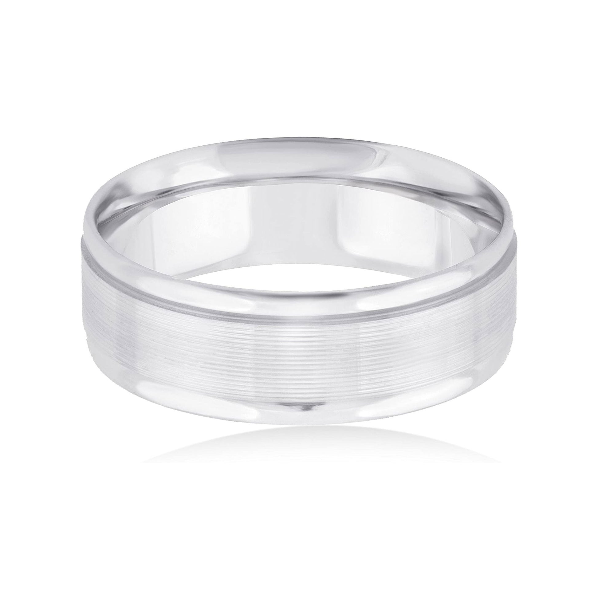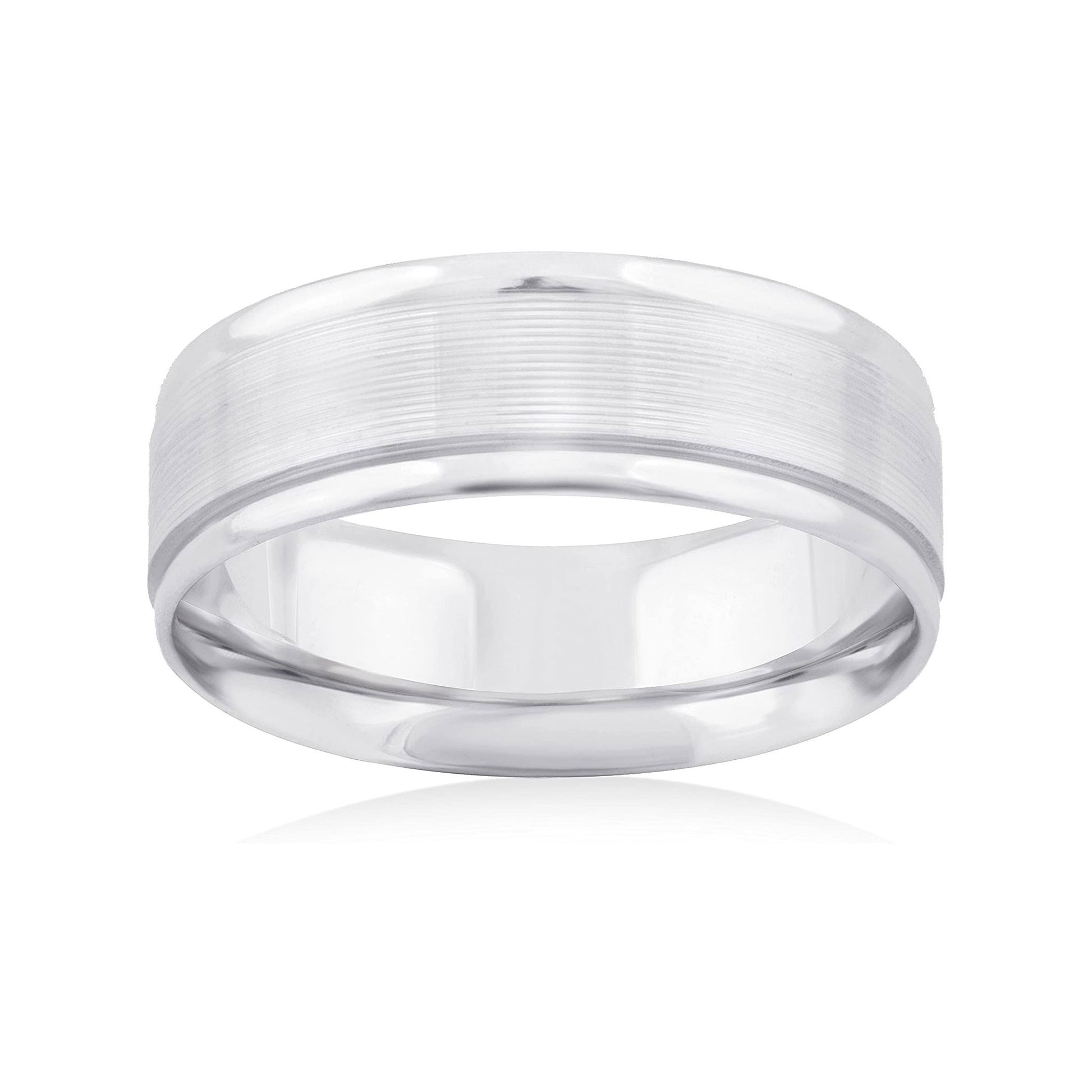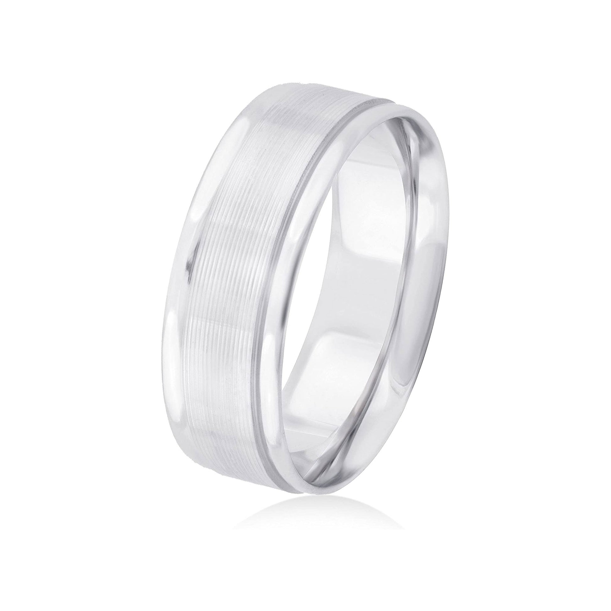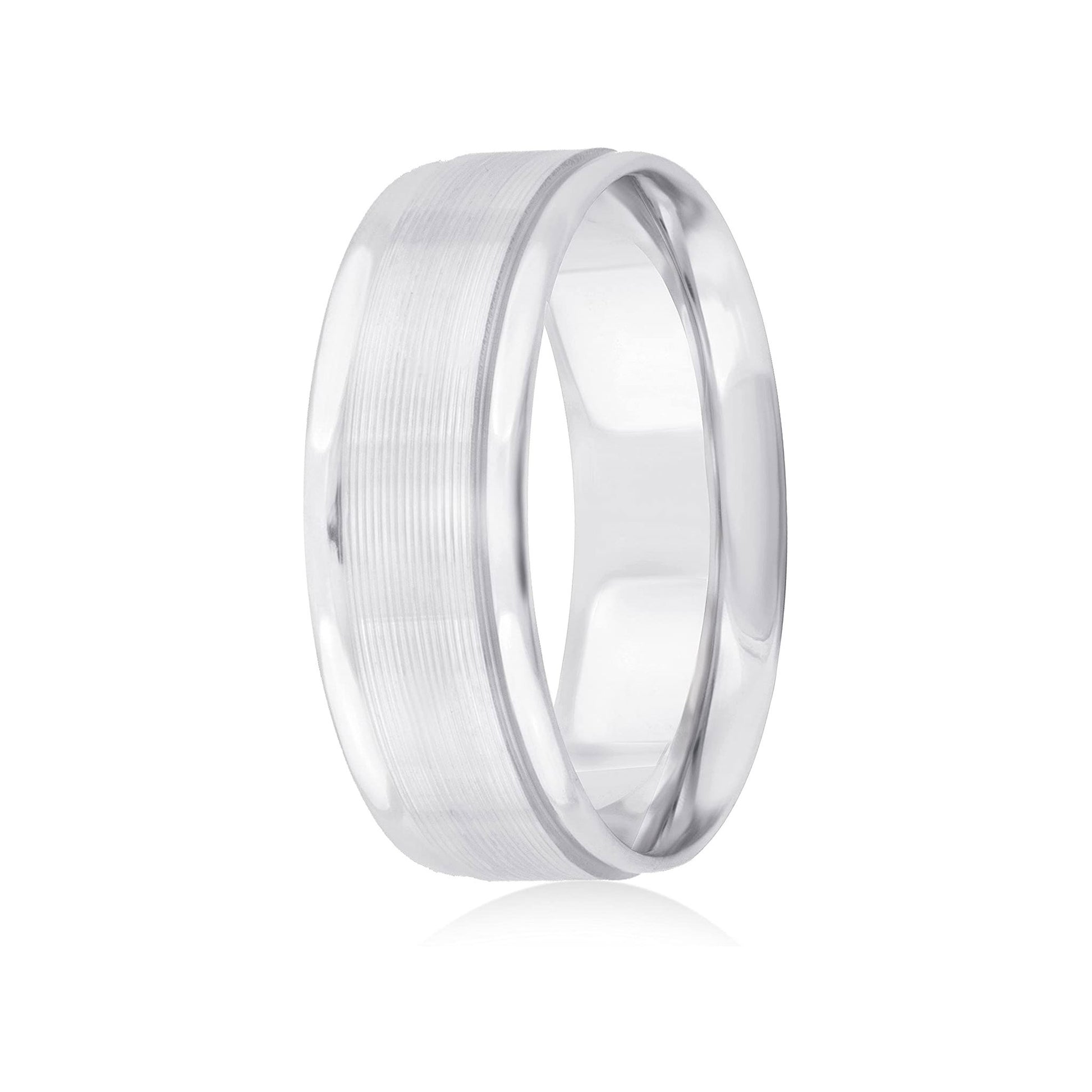 This incredible 14K White Gold 6mm Design Wedding Band coupled with the strength and comfort of the comfort-fit design combine to make this band a great choice as a stand-alone wedding band or as a great addition to any engagement ring. The band, with it's smooth design and polished finish is a wonderful choice for the traditional bride and groom of today.