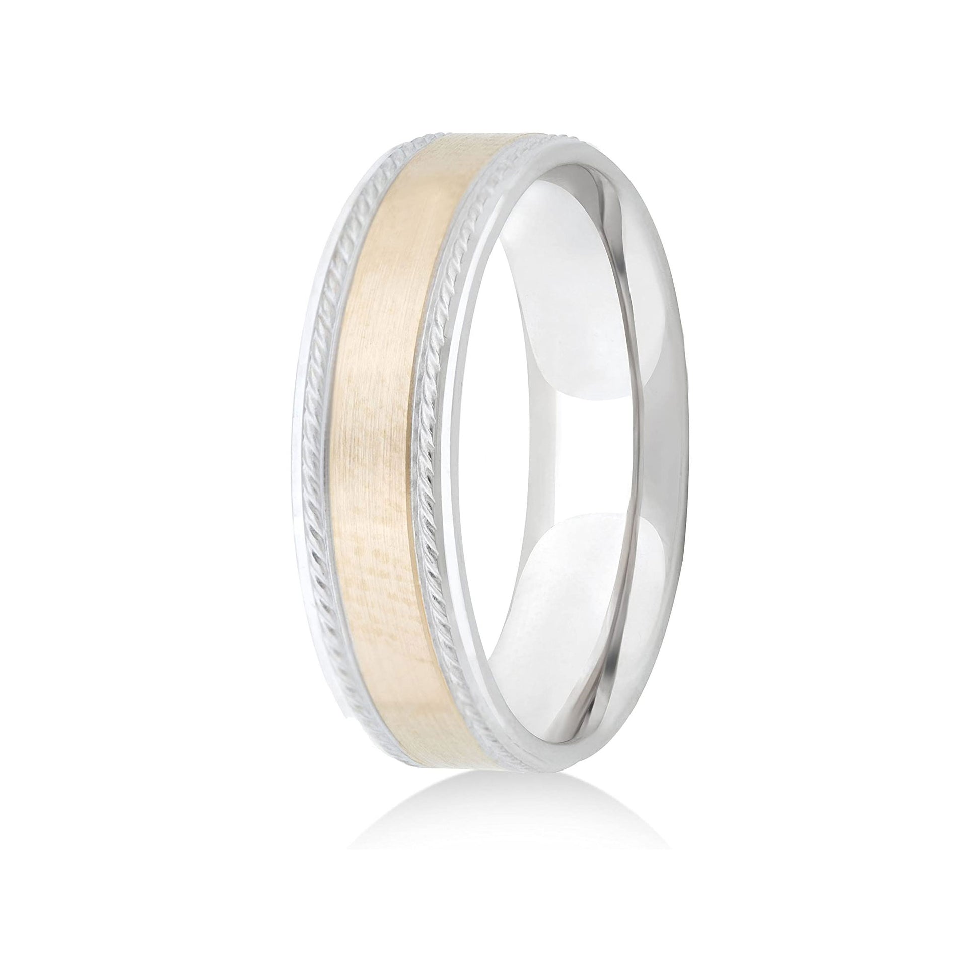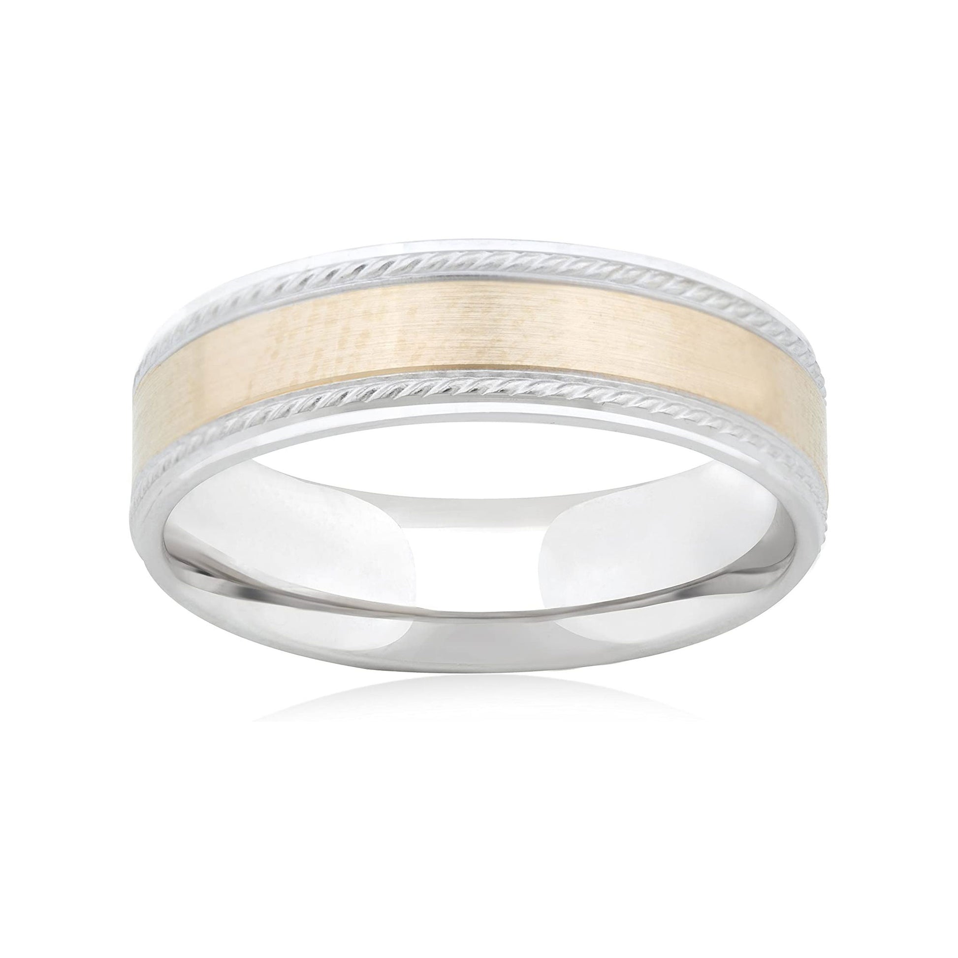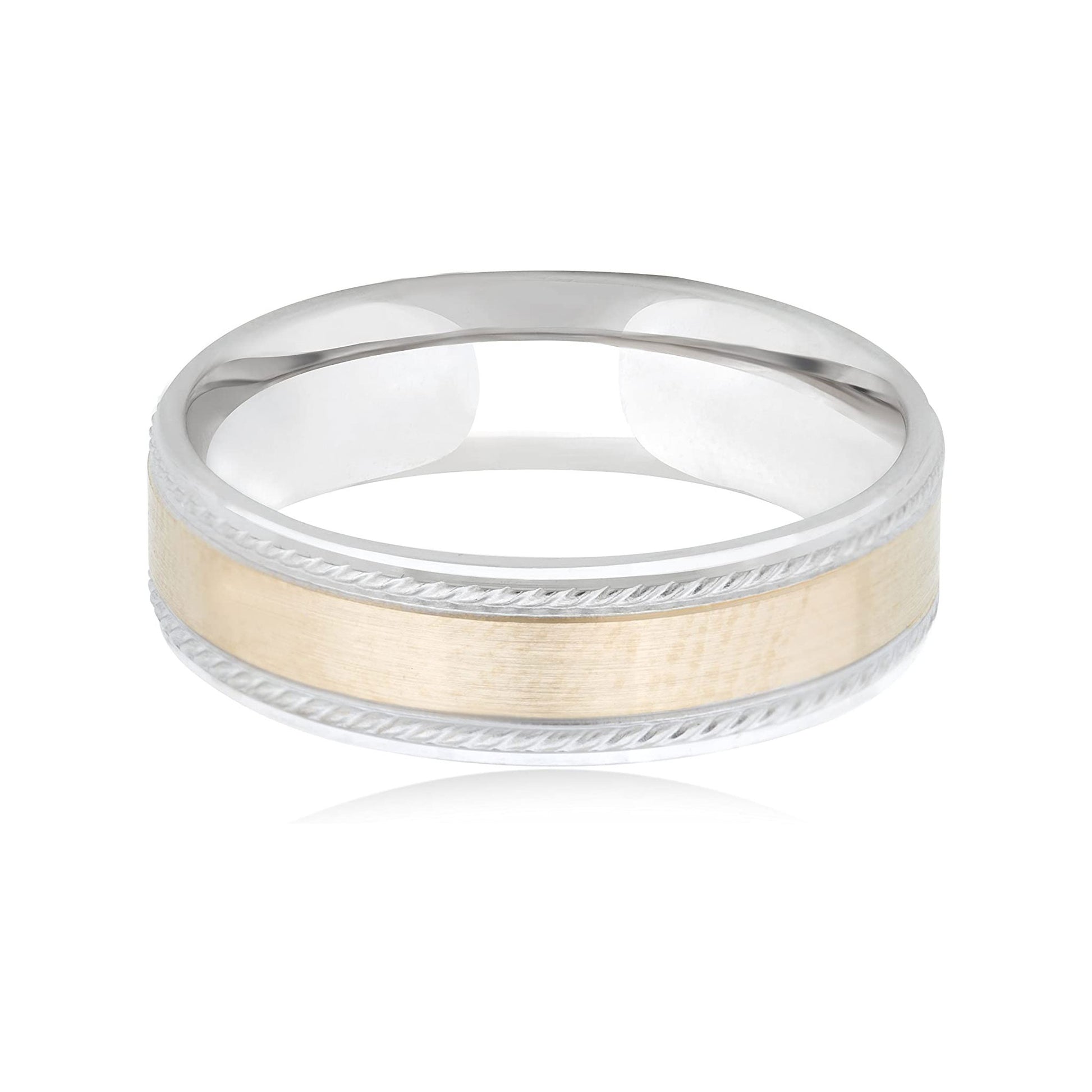 This incredible 14K Yellow/White Gold 6mm Design w/Milgraine Wedding Band coupled with the strength and comfort of the comfort-fit design combine to make this band a great choice as a stand-alone wedding band or as a great addition to any engagement ring. The band, with it's smooth design and polished finish is a wonderful choice for the traditional bride and groom of today.