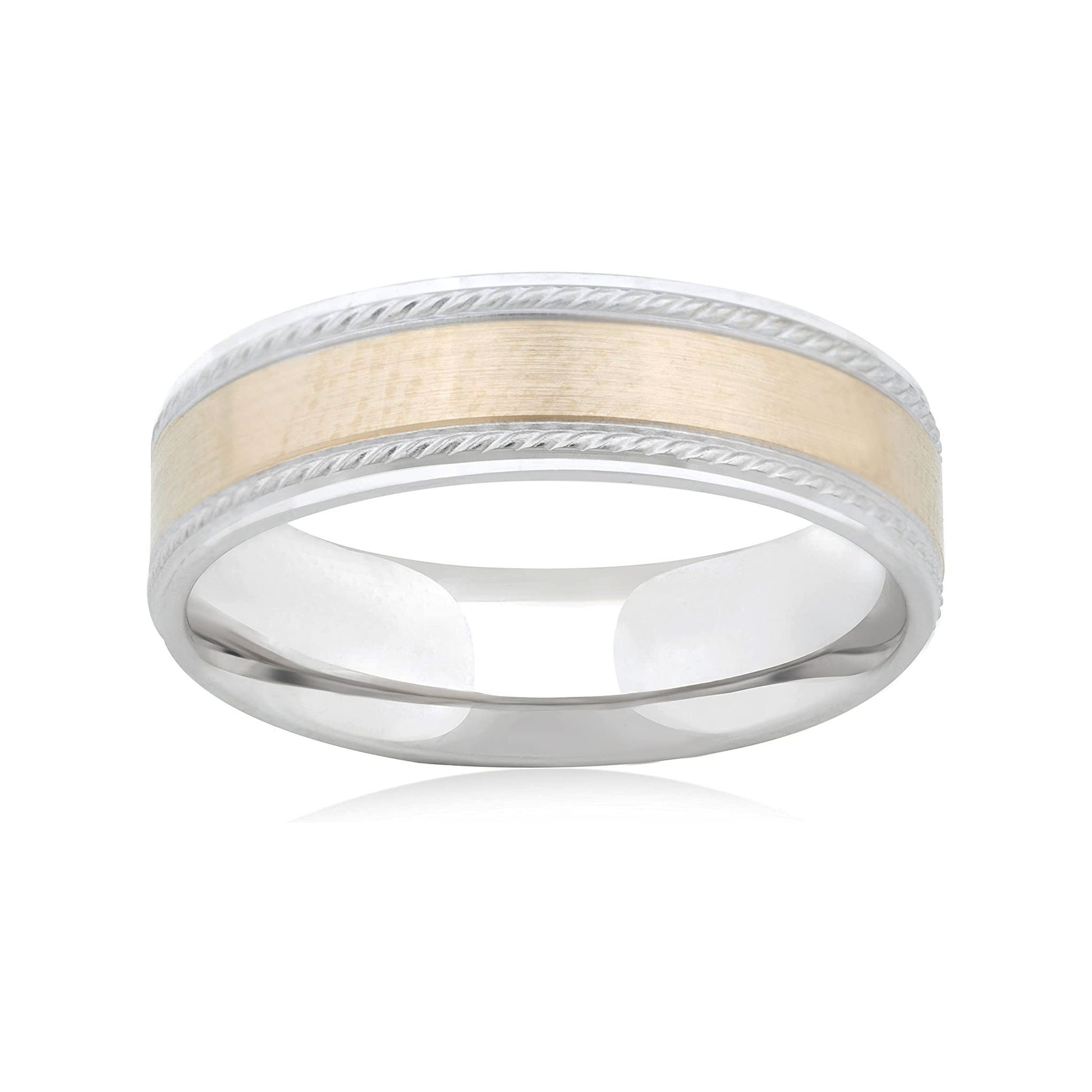 This incredible 14K Yellow/White Gold 6mm Design w/Milgraine Wedding Band coupled with the strength and comfort of the comfort-fit design combine to make this band a great choice as a stand-alone wedding band or as a great addition to any engagement ring. The band, with it's smooth design and polished finish is a wonderful choice for the traditional bride and groom of today.